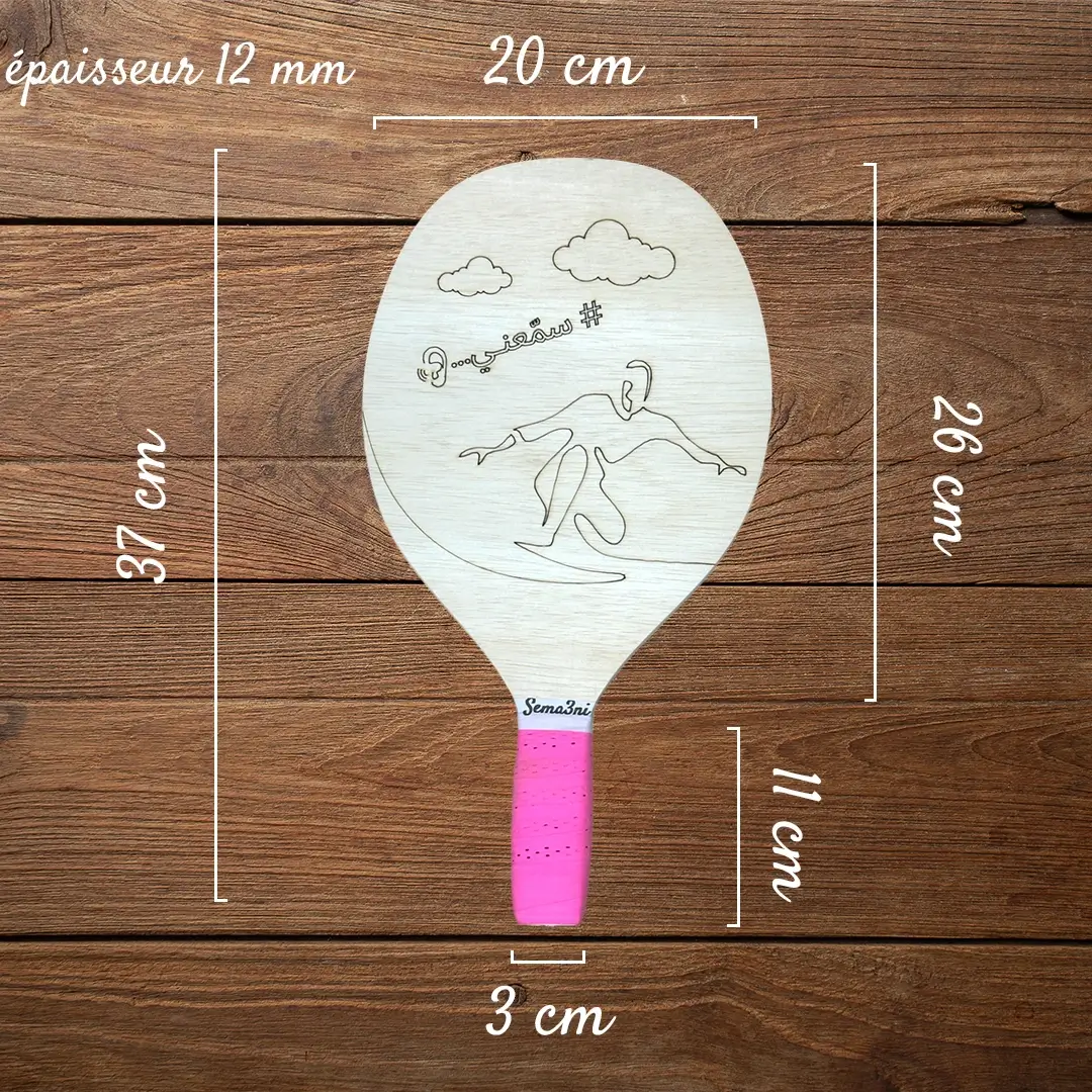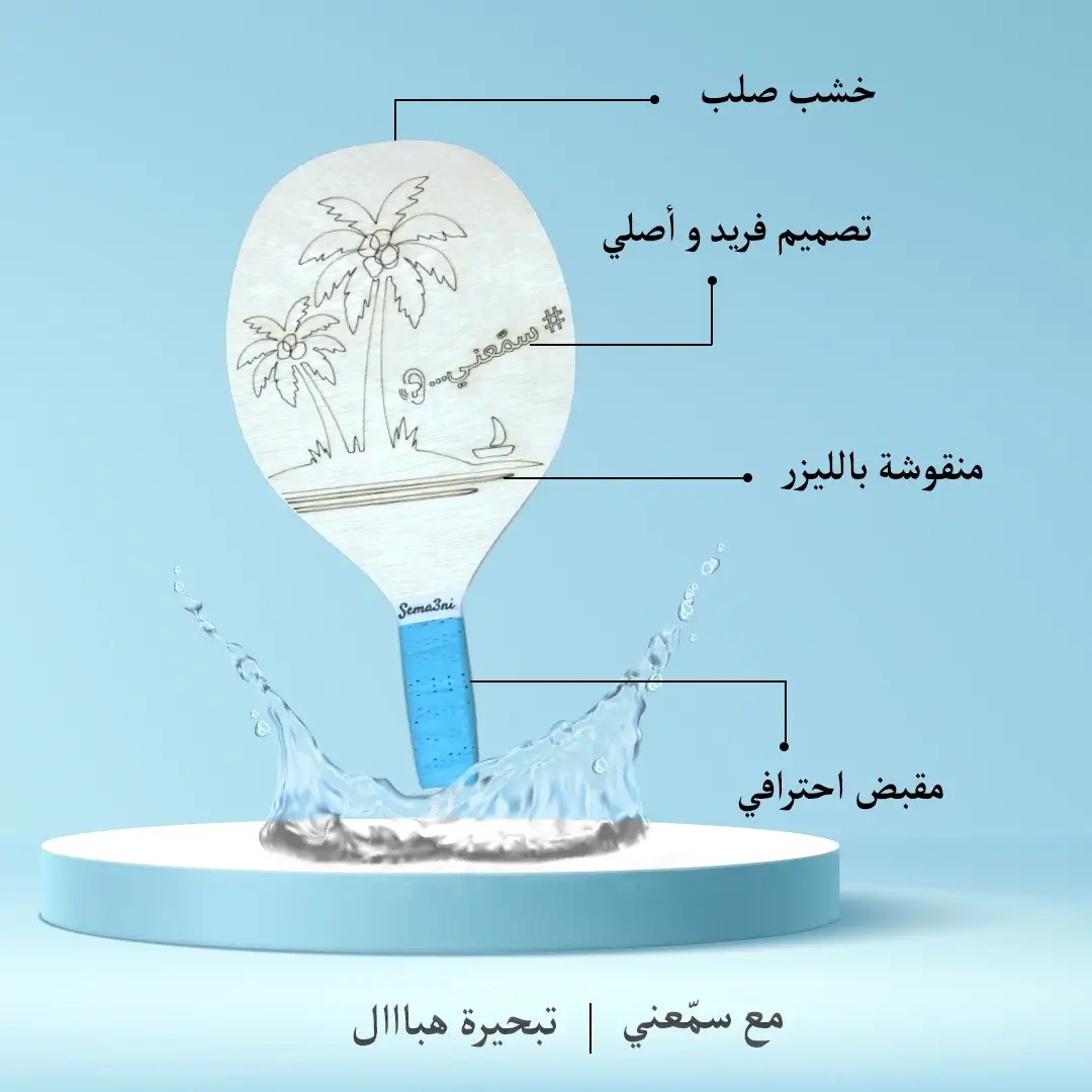 اكتشف تجربة البحر مع مضرب “سمّعني” المصنوع من خشب صلب، محفور بتصميم فريد يعكس أجواء الاسترخاء الصيفية. مقبض احترافي يمنحك تحكّم مثالي في اللعب – مثالي للشاطئ